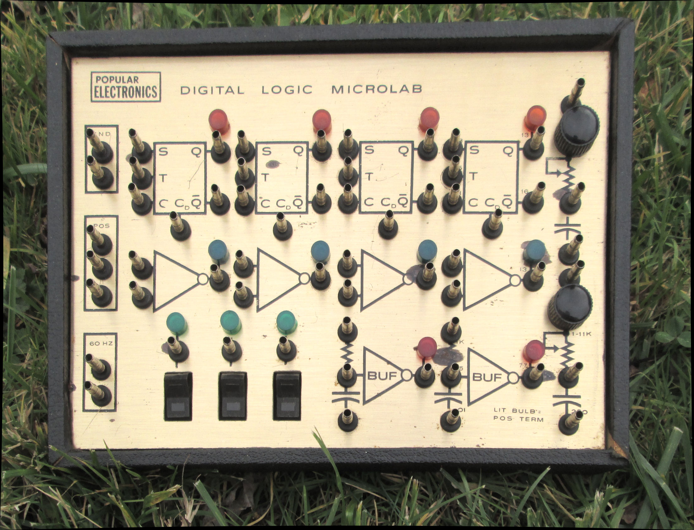 In october 2025, I obtained another Microlab, from its original owner. This one was in the box (a simple cardboard box) and came with the "RTL Cookbook" as originally sold with it, said the owner. It also had a bunch of connecting wires. In Nov 2025 I cleaned up the surface, that's the photo shown here. Cosmetically it's in better shape than my 2023 purchase.
