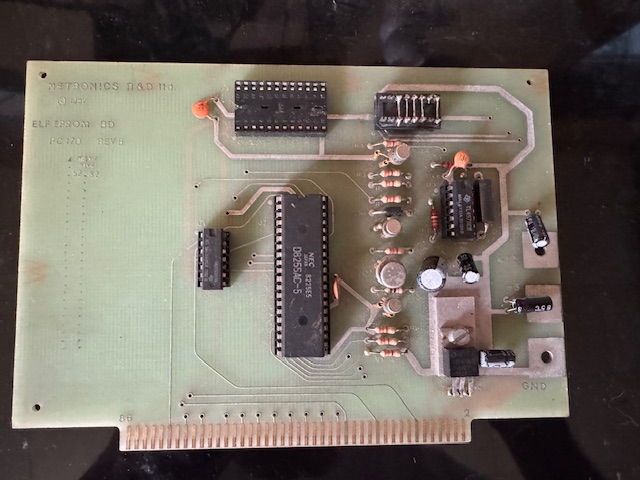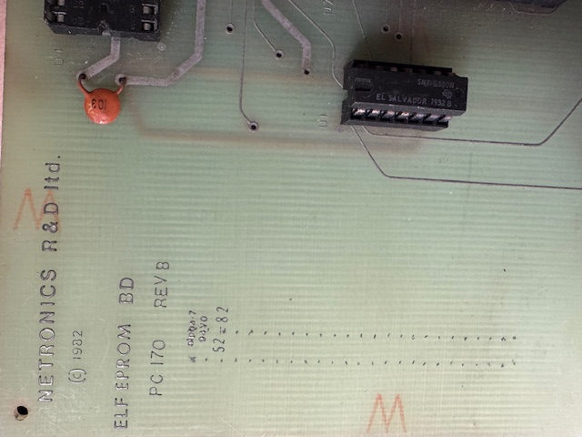 Ronnie Searle sent me an email March 20 2026 with "pictures of my Elf II EProm programmer board. It's originally from Netronics. I can't find any information on it." he says. Ronnie kept an Elf II with cards but "somehow my documentation got lost in the 48 years that I had this thing. I had to download it all [recently to work on restoring it]".