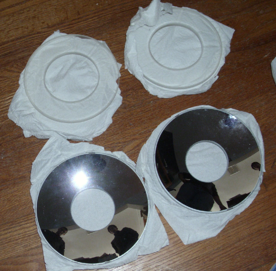 about 20 1.25" circular flat mirrors, in box, pretty thin. Oddball secondaries?